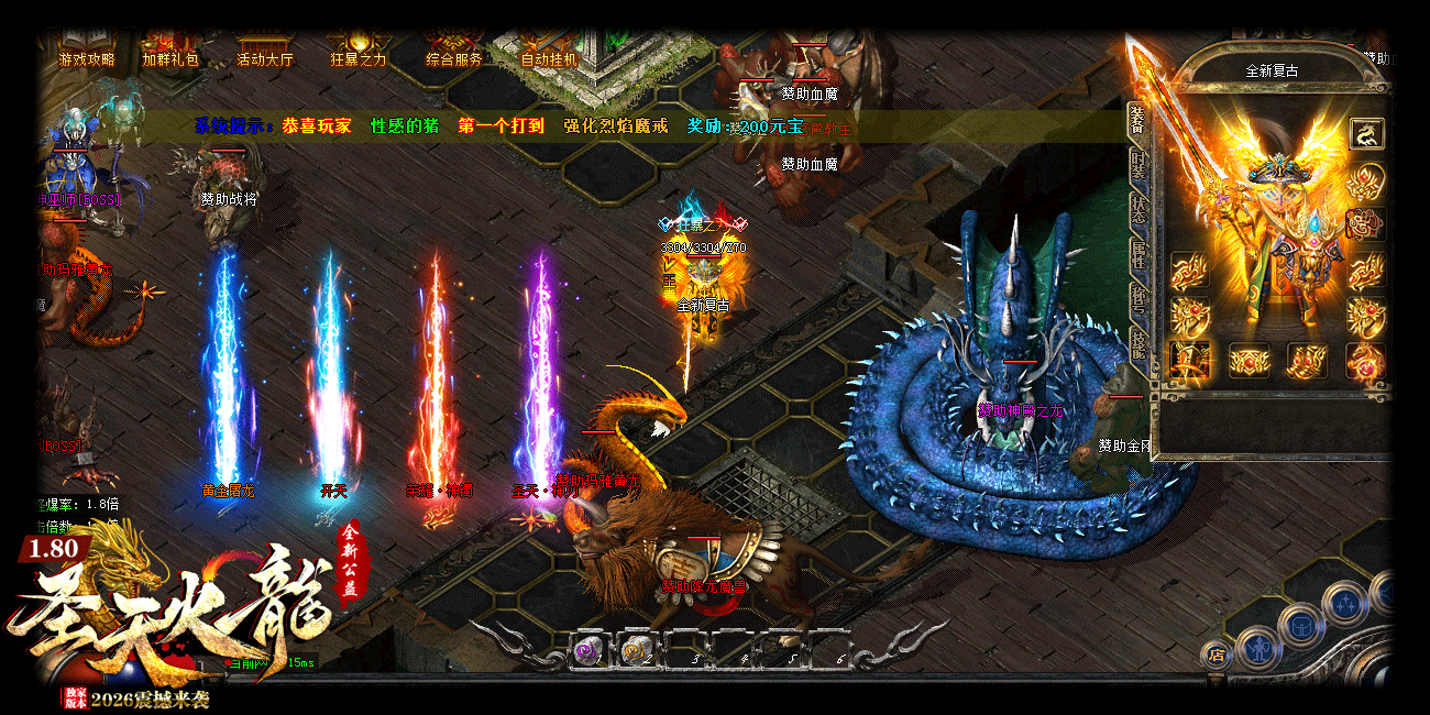 - ▶【版本类型】2026独家巨作1.80圣天火龍,低消费,大激情,一切靠打,装备保值!